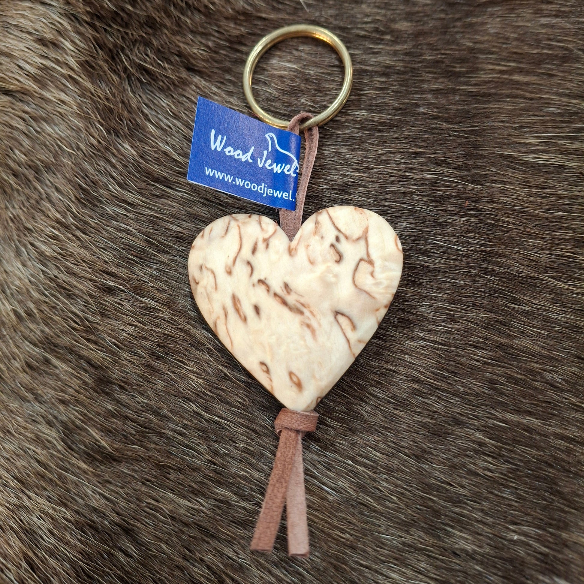 Keychain; visa birch heart; with leather strap or chain