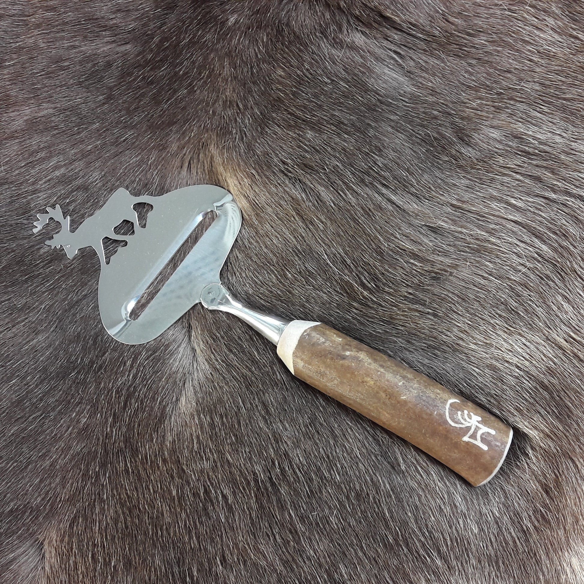 Juustohöylä; poronsarvikahva; poro terällä; poronkuvalla