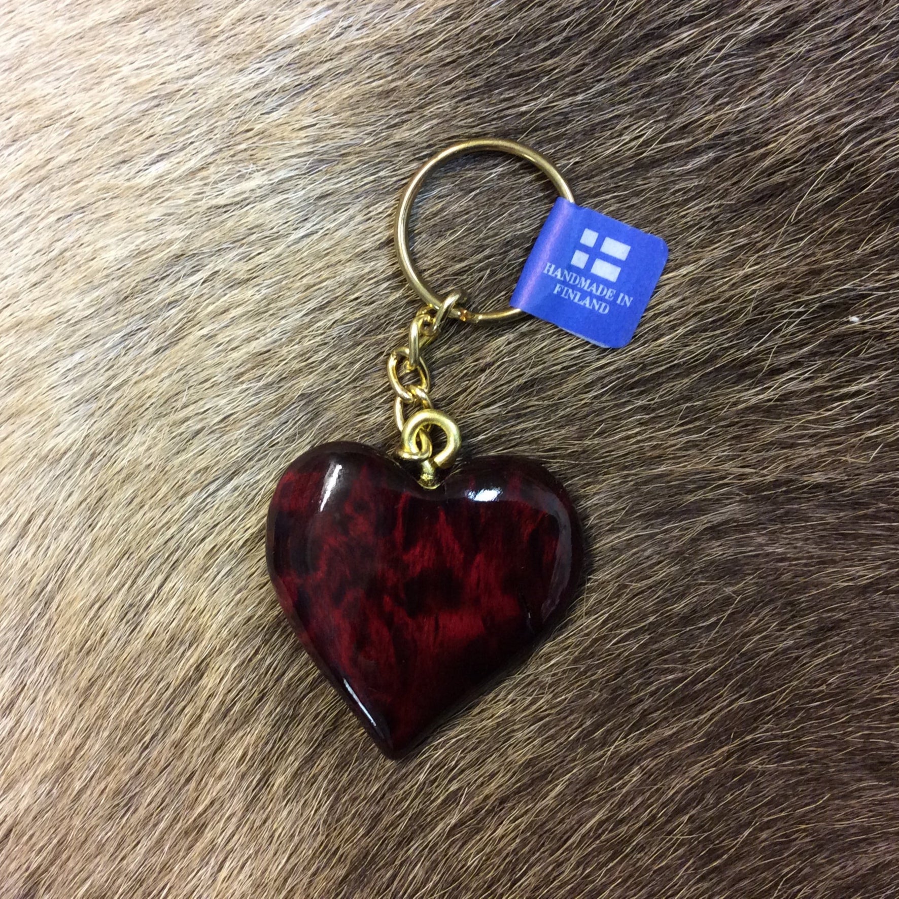 Avaimenperä; visakoivuinen sydän; petsattu ja lakattu; ketjulla